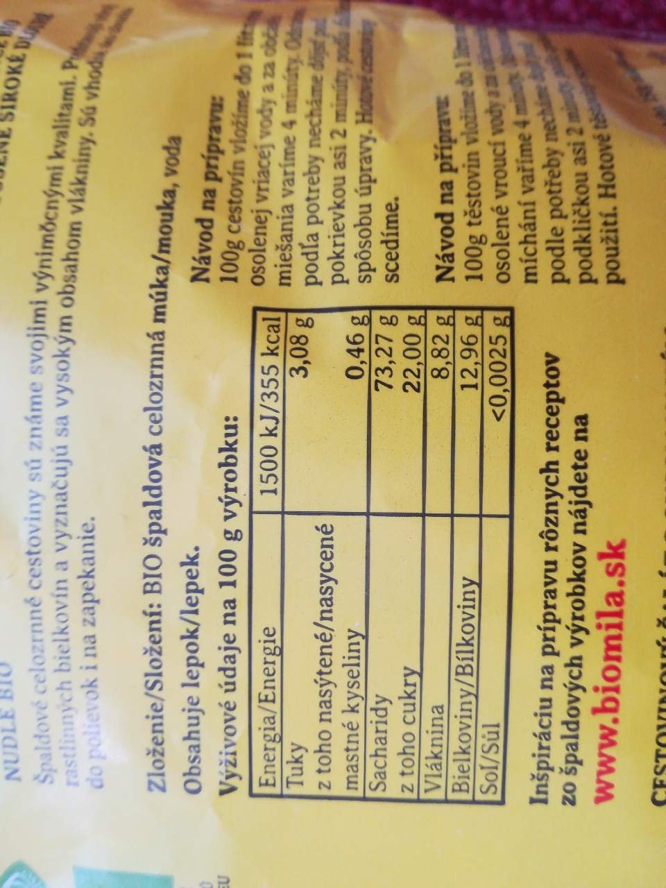 Těstoviny nudle BIO