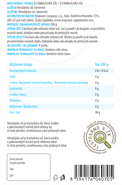 | Sůl | 98 g | 490 g |