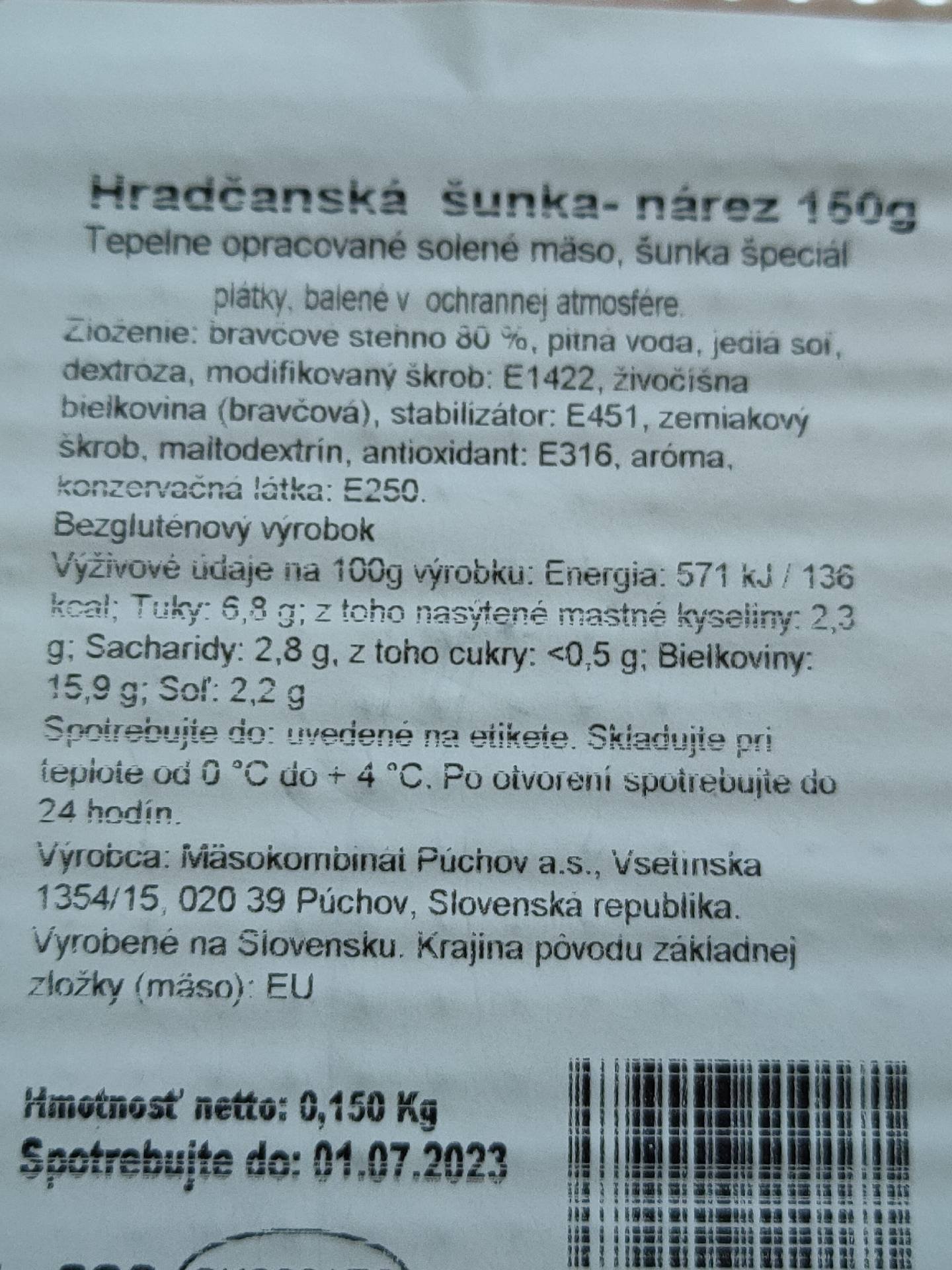 Tepelně opracované solené maso, šunka speciál.