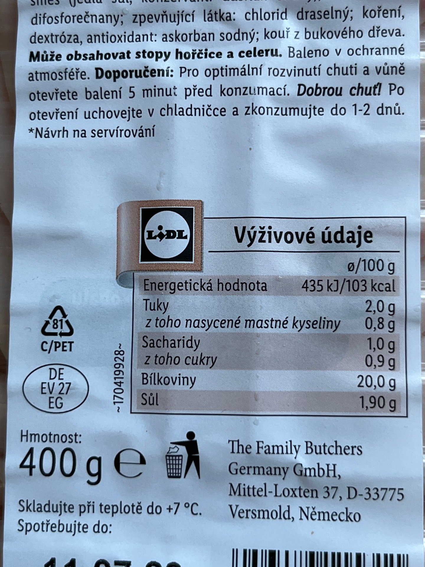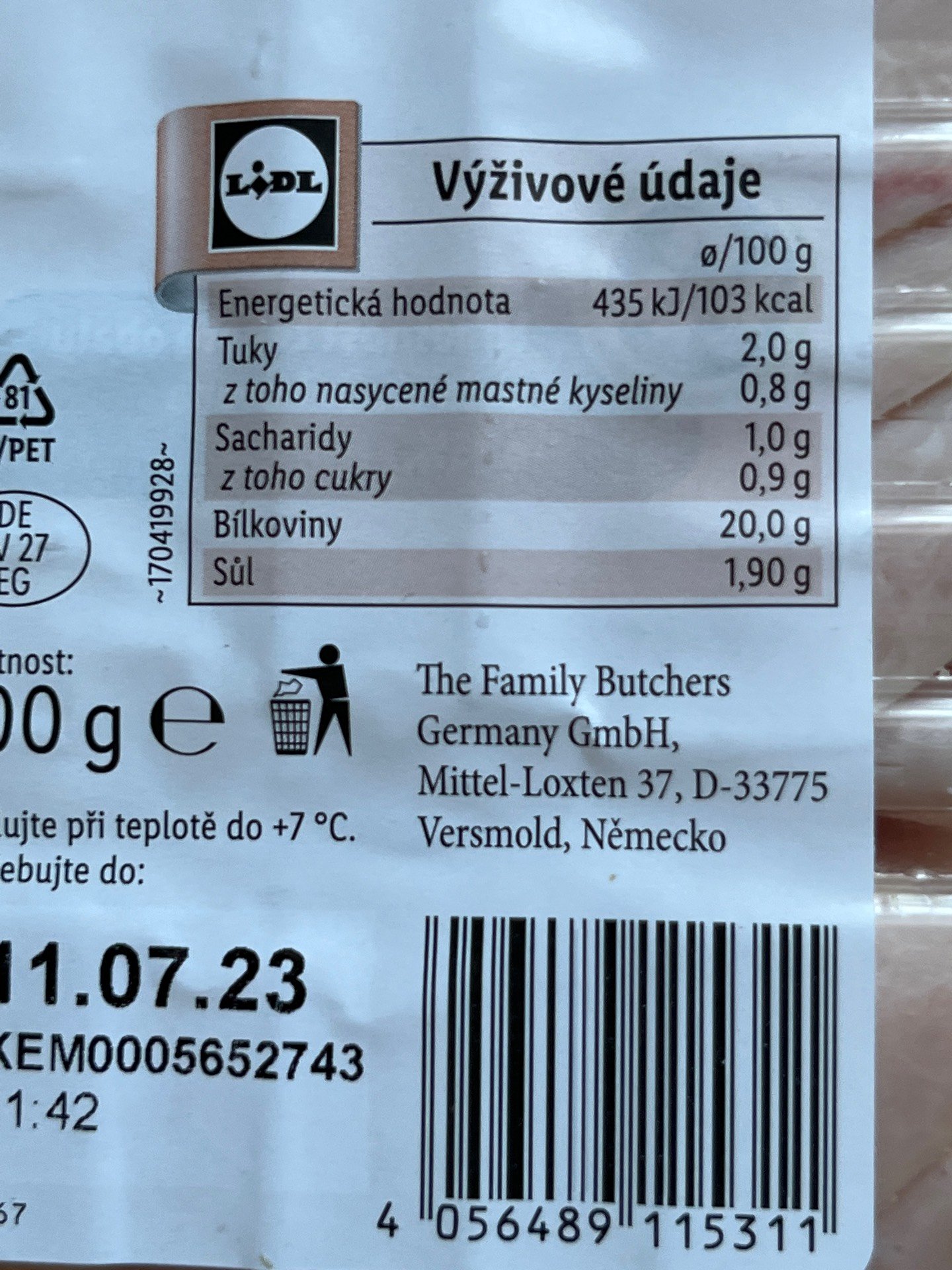 Masný výrobek tepelně opracovaný, uzený, krájený.