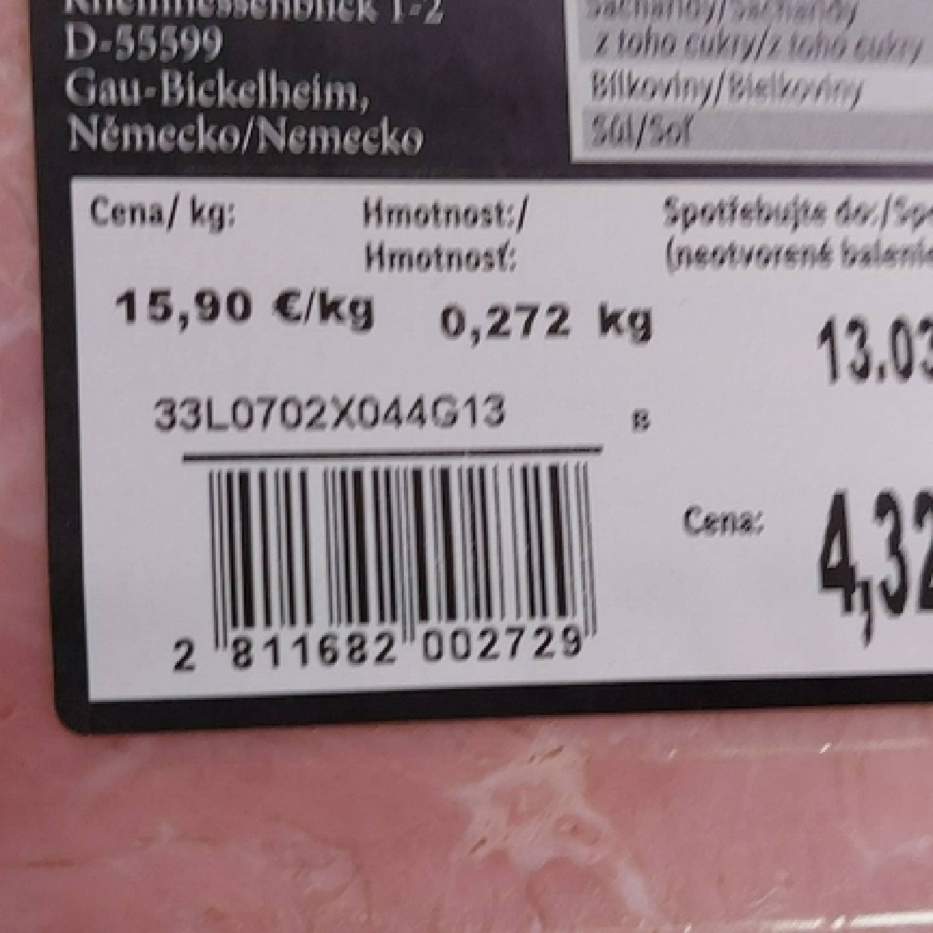 | Obsah přidaných dusitanů | není znám jiný než zákonný podíl | 0 |