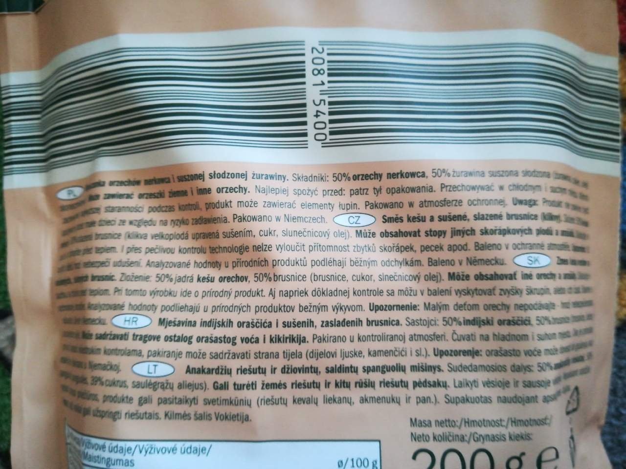Směs kešu a brusinek