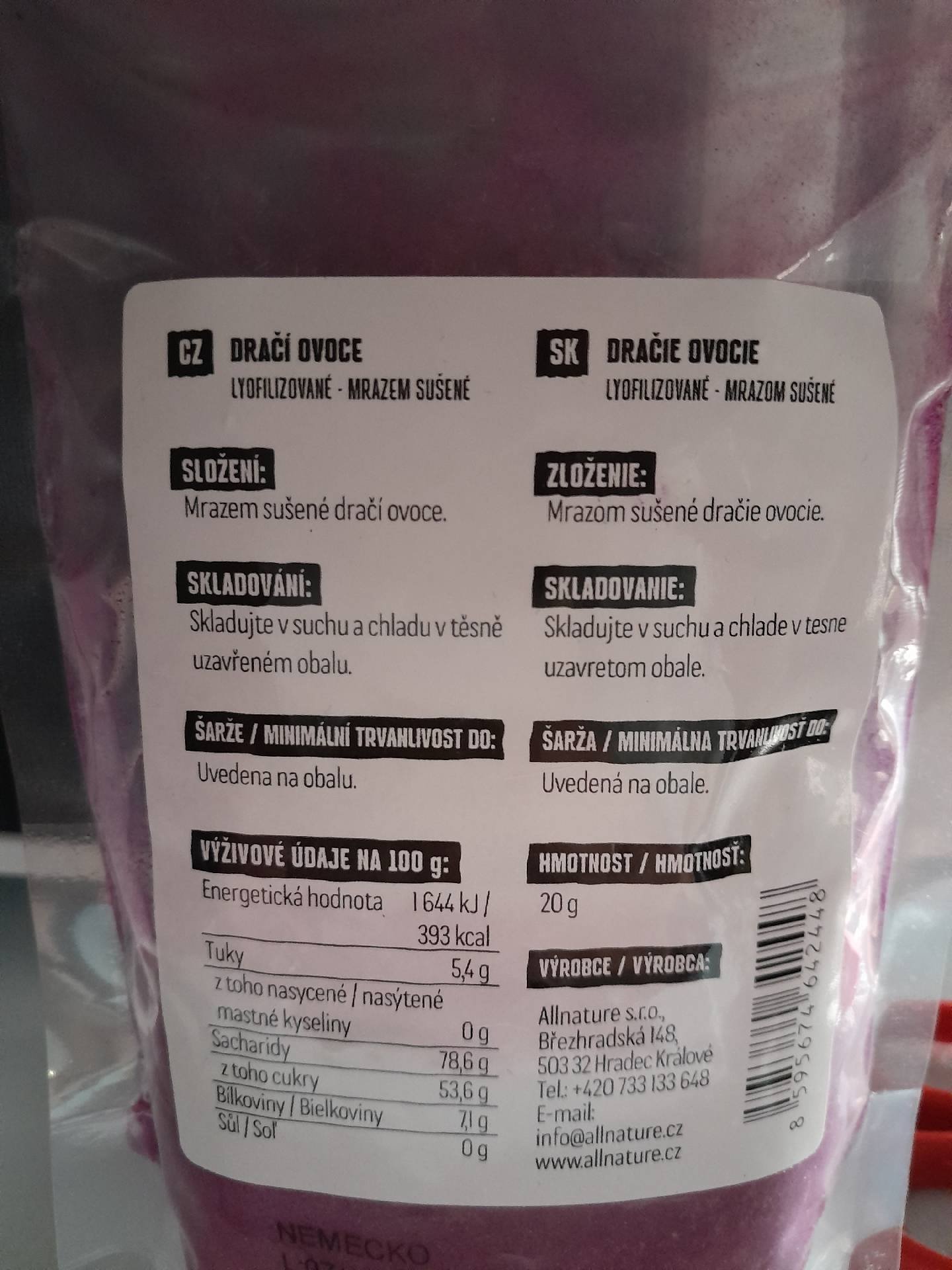 | Uvedeno výživové tvrzení | - neuvedeno - | 0 |