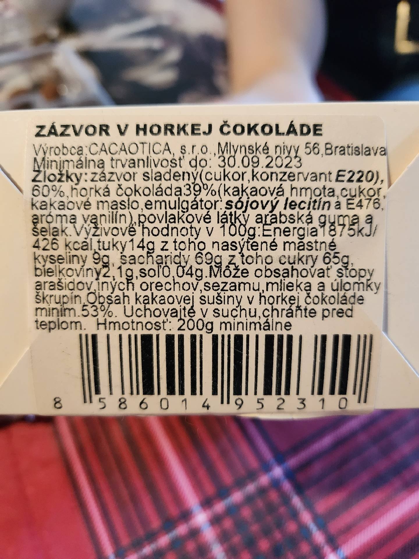 Obsah kakaové sušiny v hořké čokoládě min. 53%.