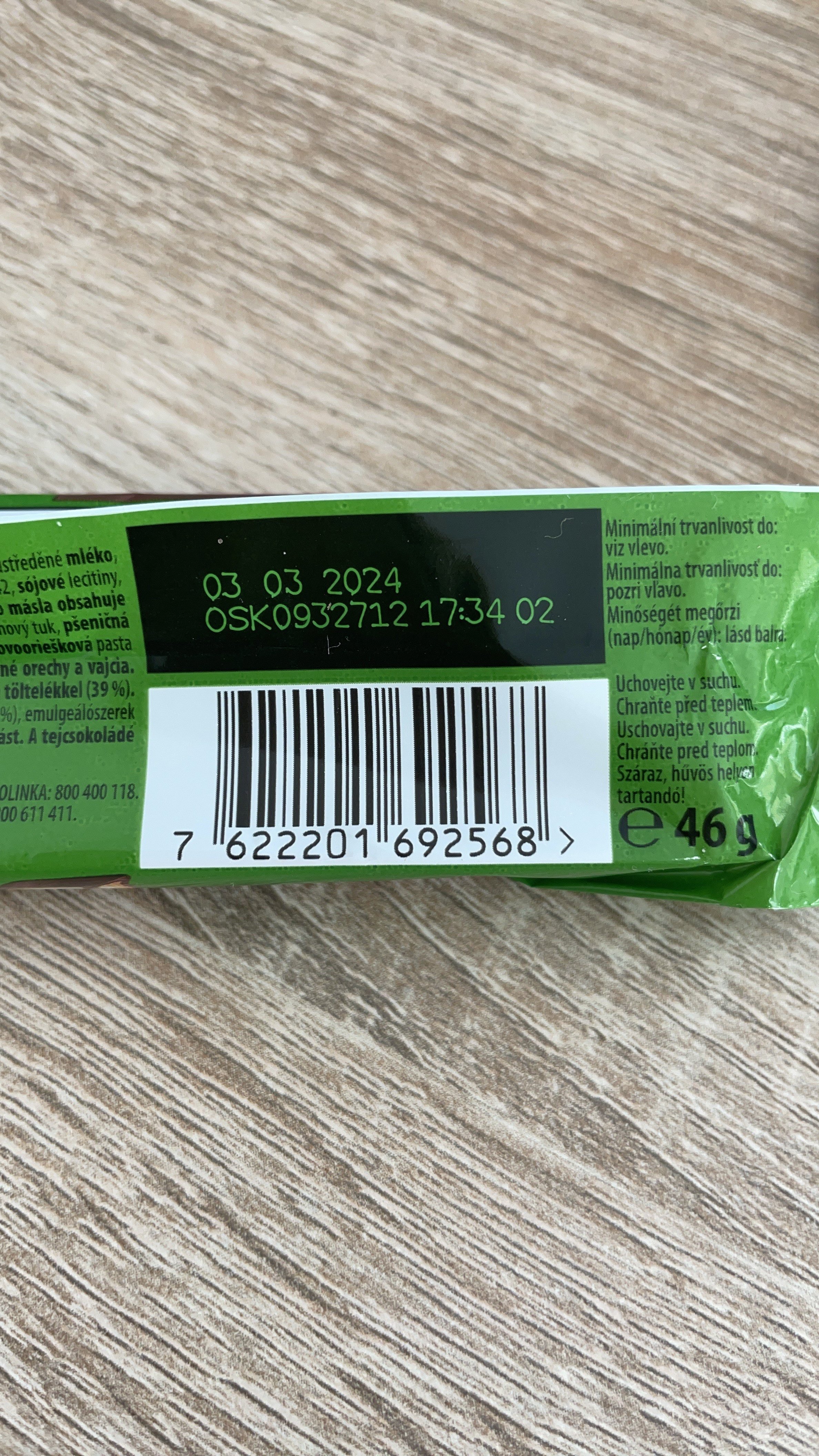 Sušenka (14%) s mléčnou čokoládou (46%) a náplní (39%) s lískooříškovou příchutí. Čokoláda vedle kakaového másla obsahuje i jiné rostlinné tuky.