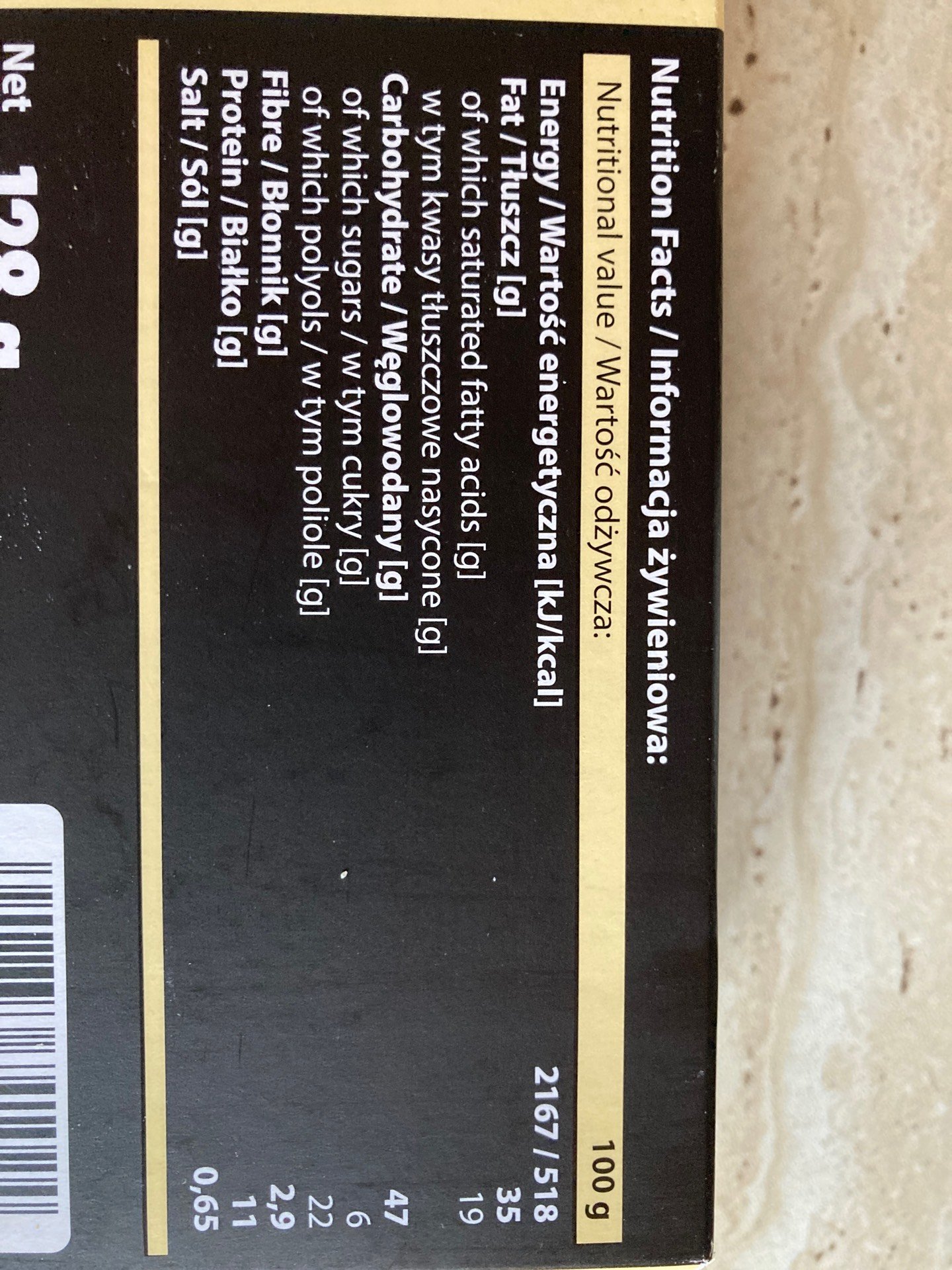 • Polyoly / Alkoholické cukry - 22 g / 100 g výrobku