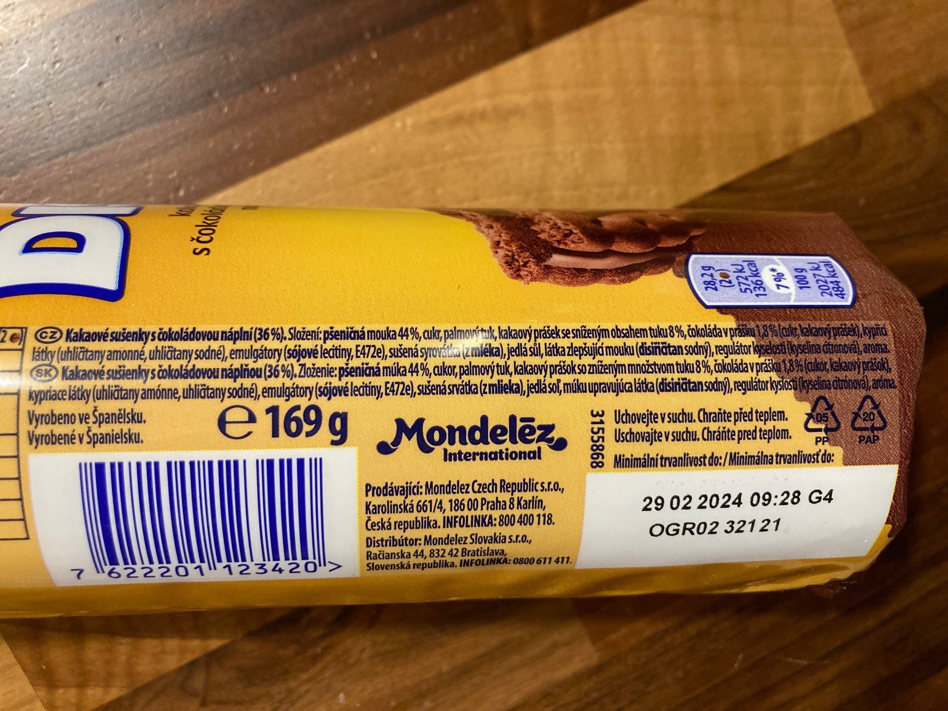 Kakaové sušenky s čokoládovou náplní 36%.