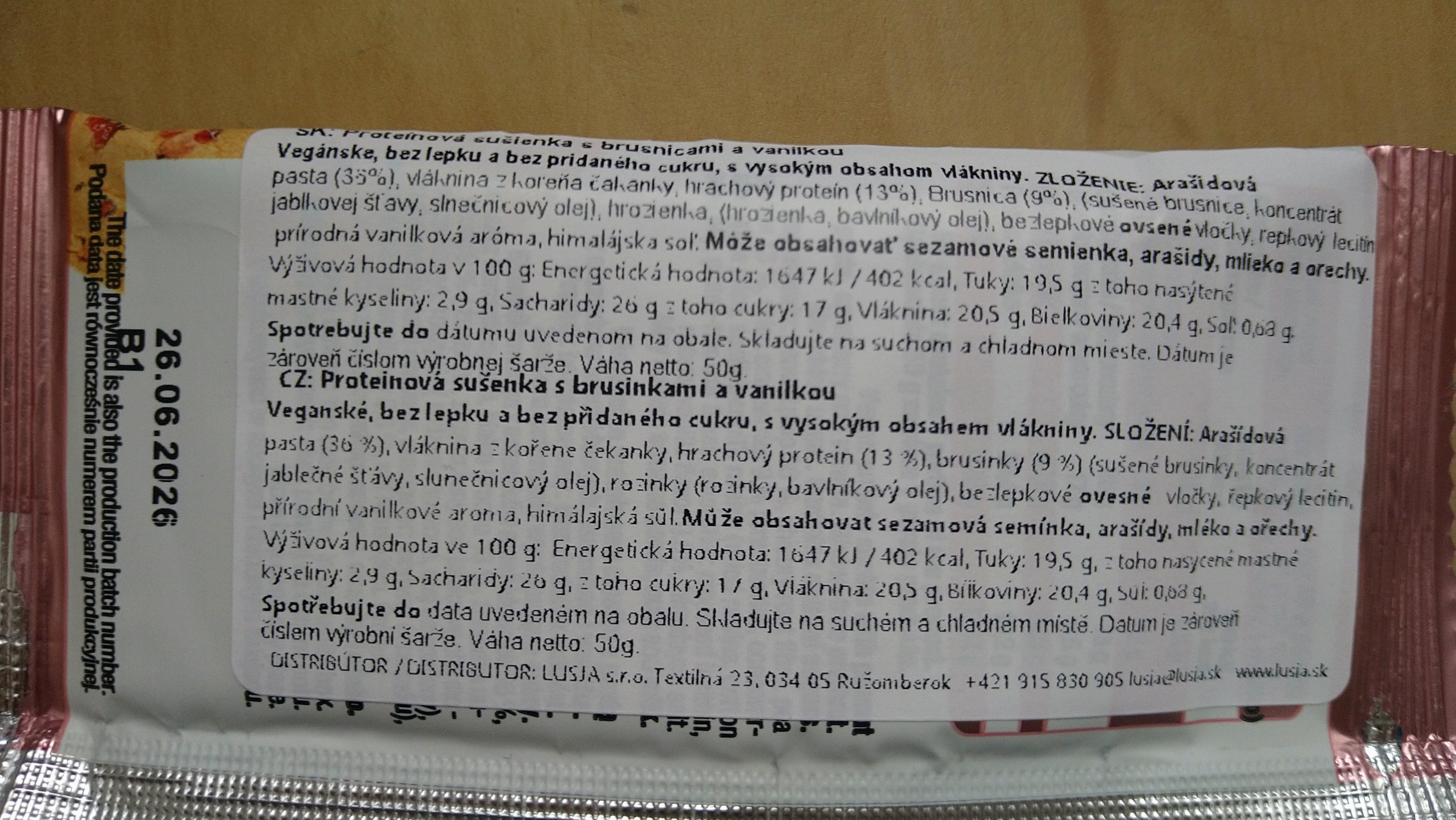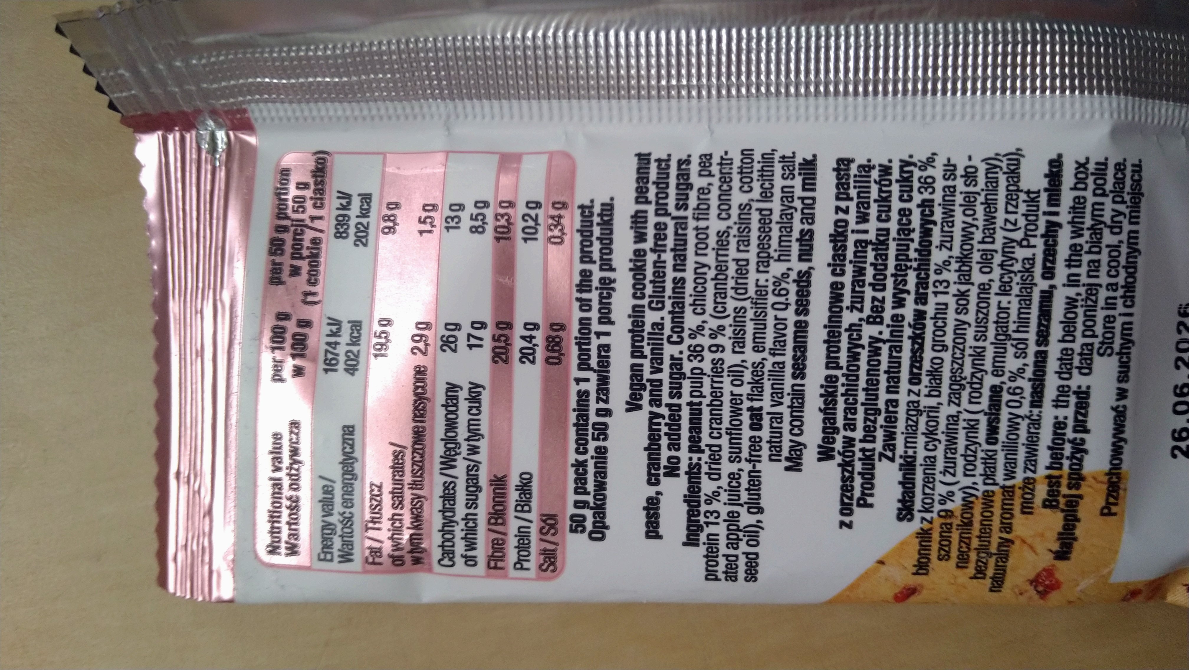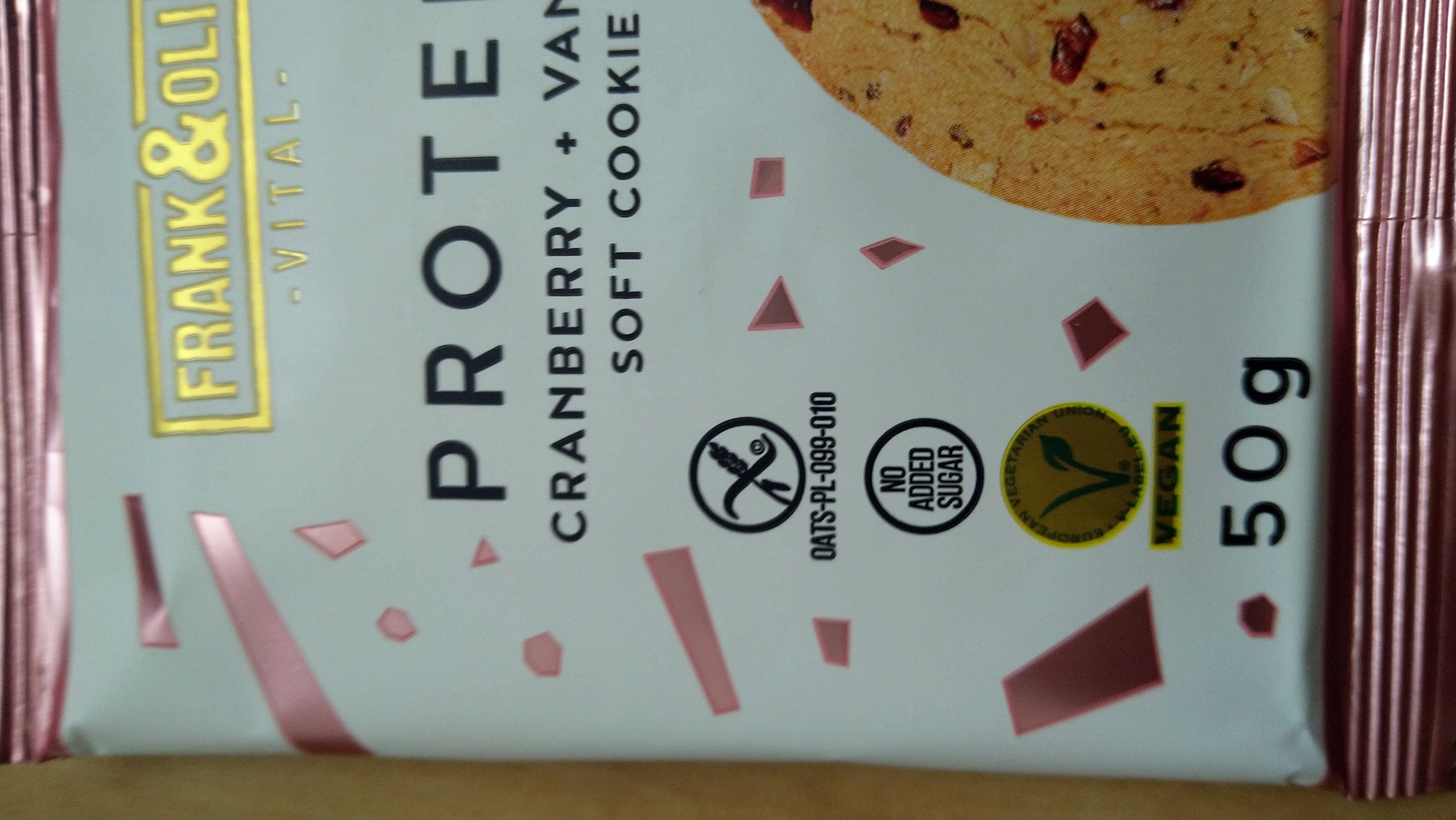 Proteinová sušenka s brusinkami a vanilkou.