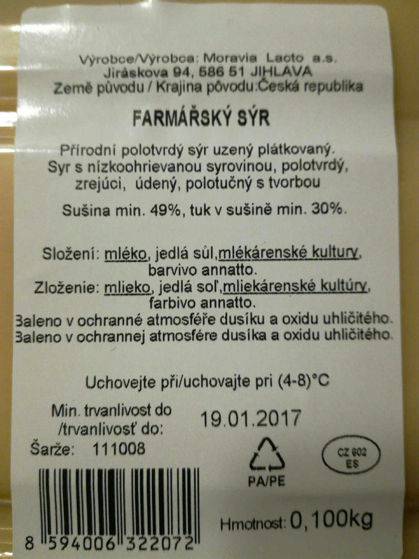 Přírodní polotvrdý sýr uzený plátkovaný.