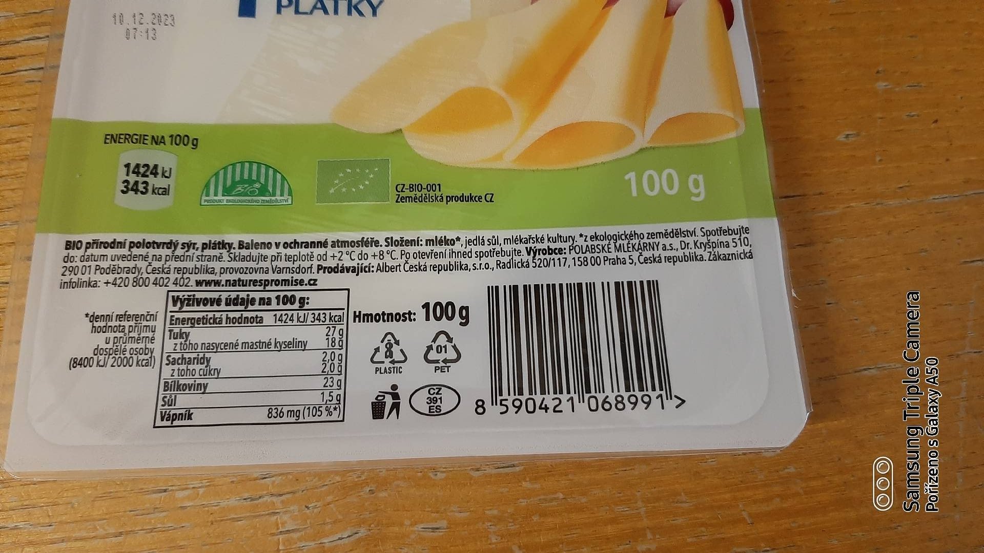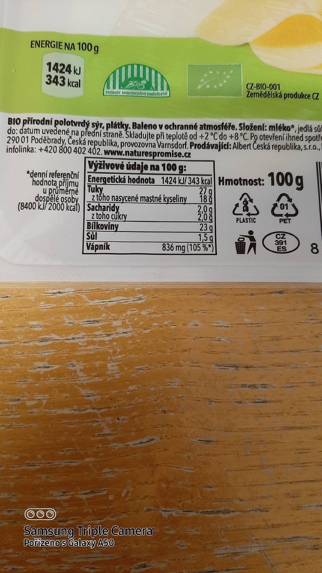 bio přírodní polotvrdý sýr