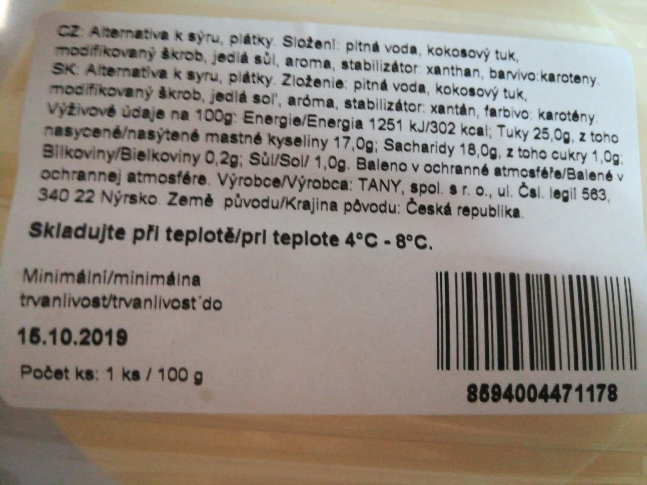 Tudlee Plátky Original. 100% rostlinná alternativa k sýrům z kokosového oleje. Bez lepku, laktózy, sóji a palmového oleje.