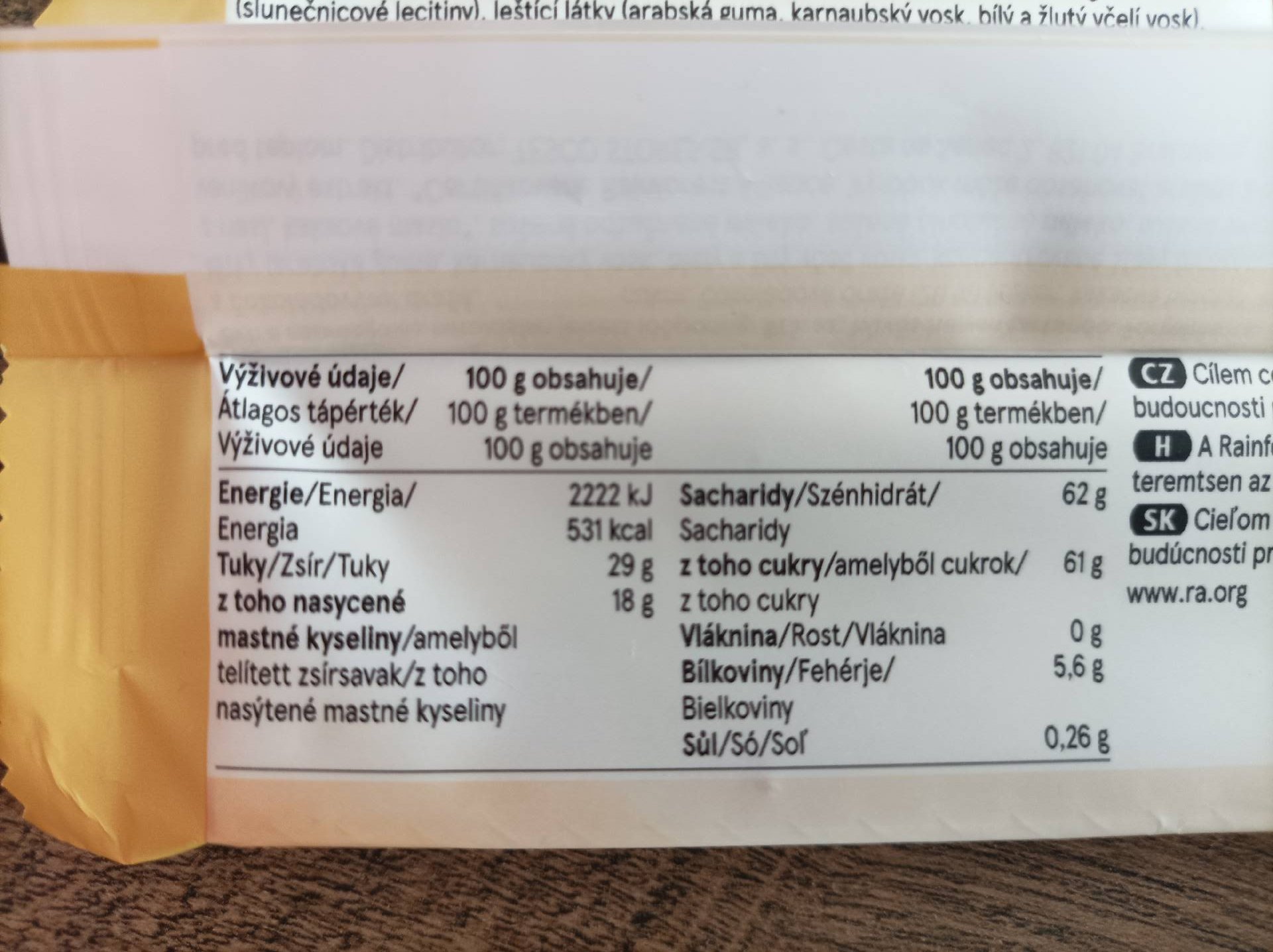 | Obsahuje palmový olej/tuk/palmojádrový tuk |
