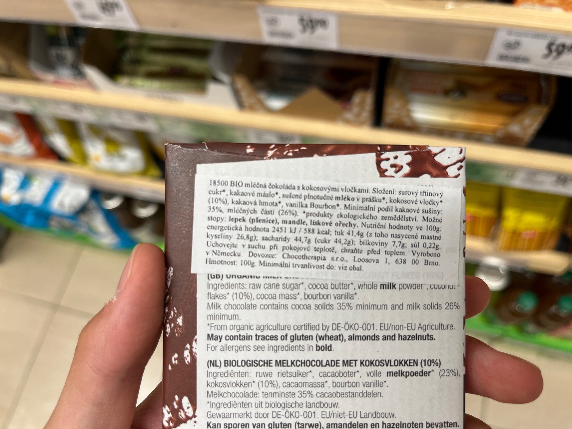 Bio mléčná čokoláda s kokosovými vločkami