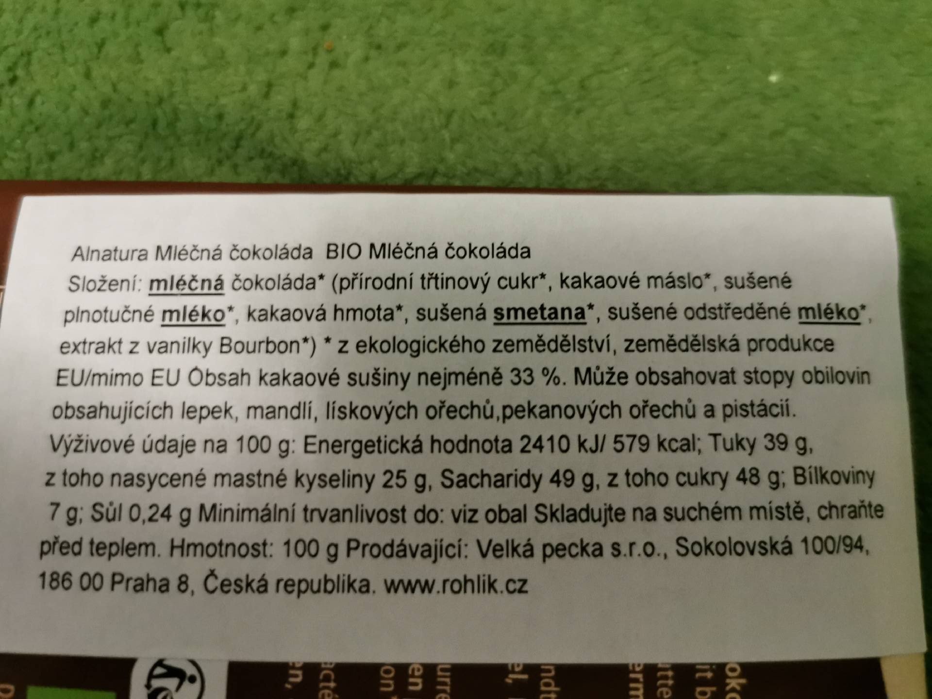 Alnatura Mléčná čokoláda BIO mléčná čokoláda.