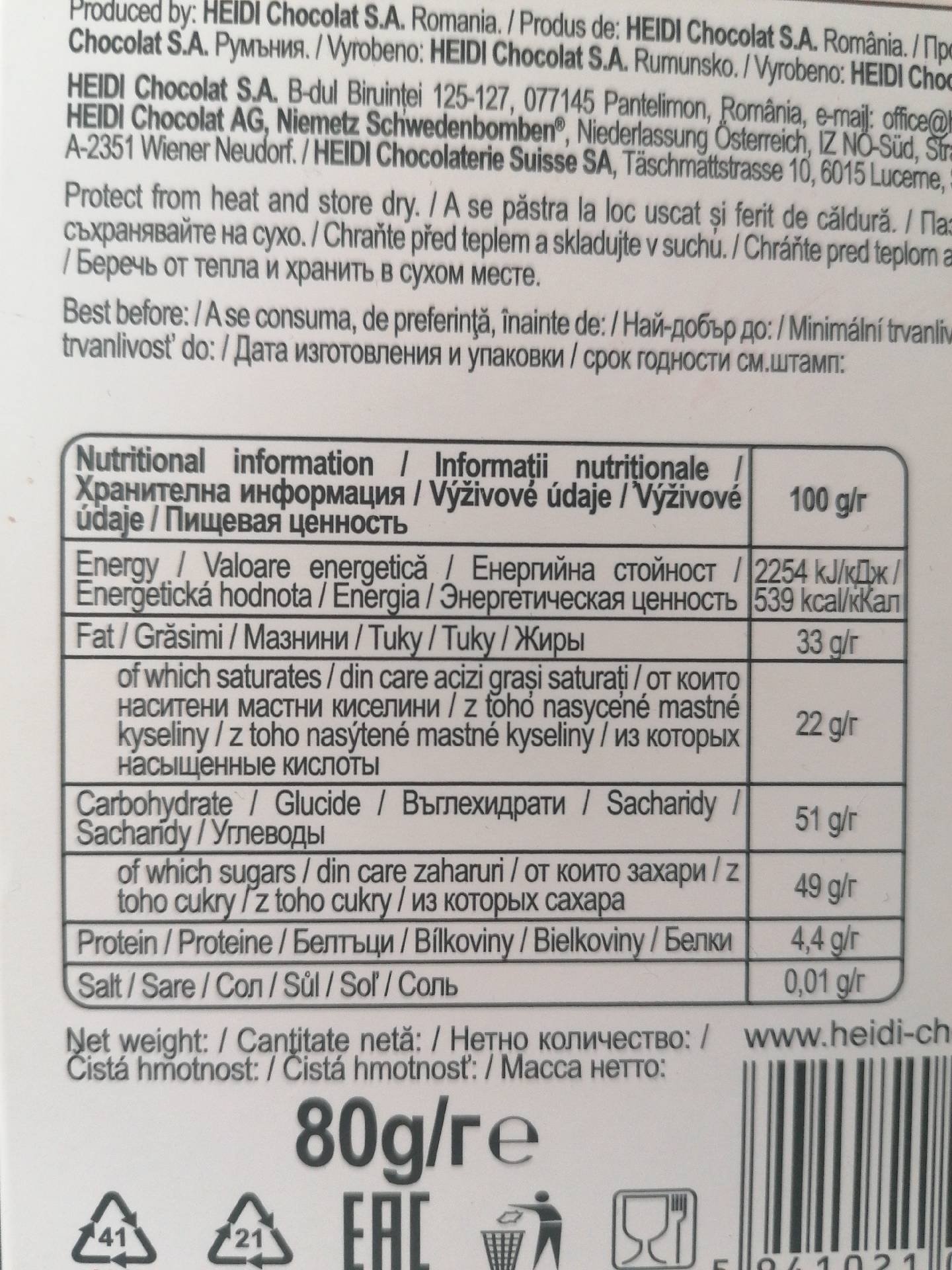 Obsah kakaové sušiny v hořké čokoládě min. 50%.