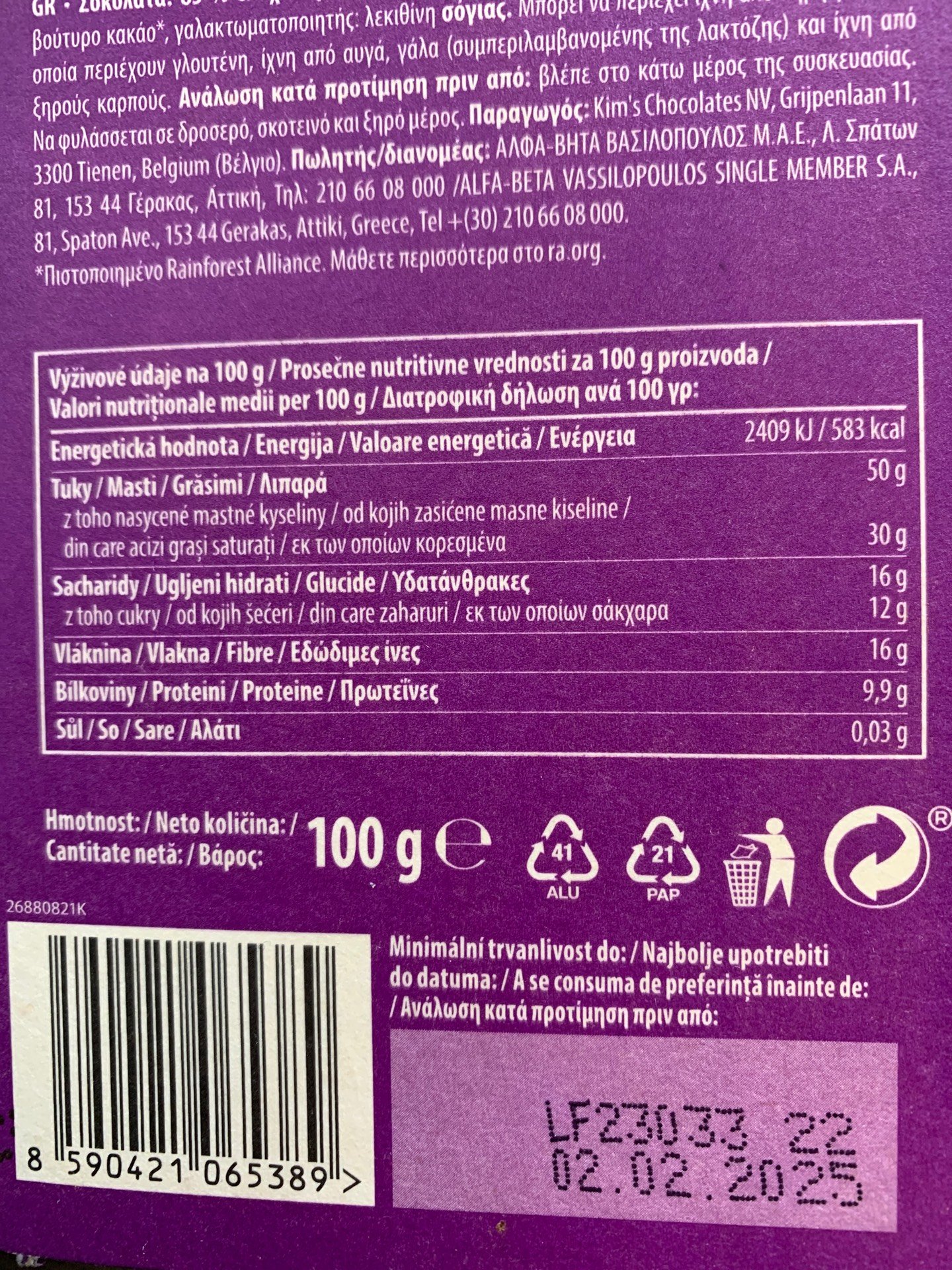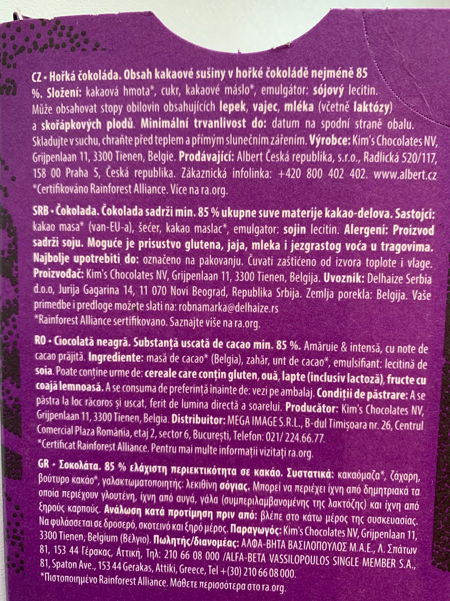 Obsah kakaové sušiny v hořké čokoládě min. 85%.