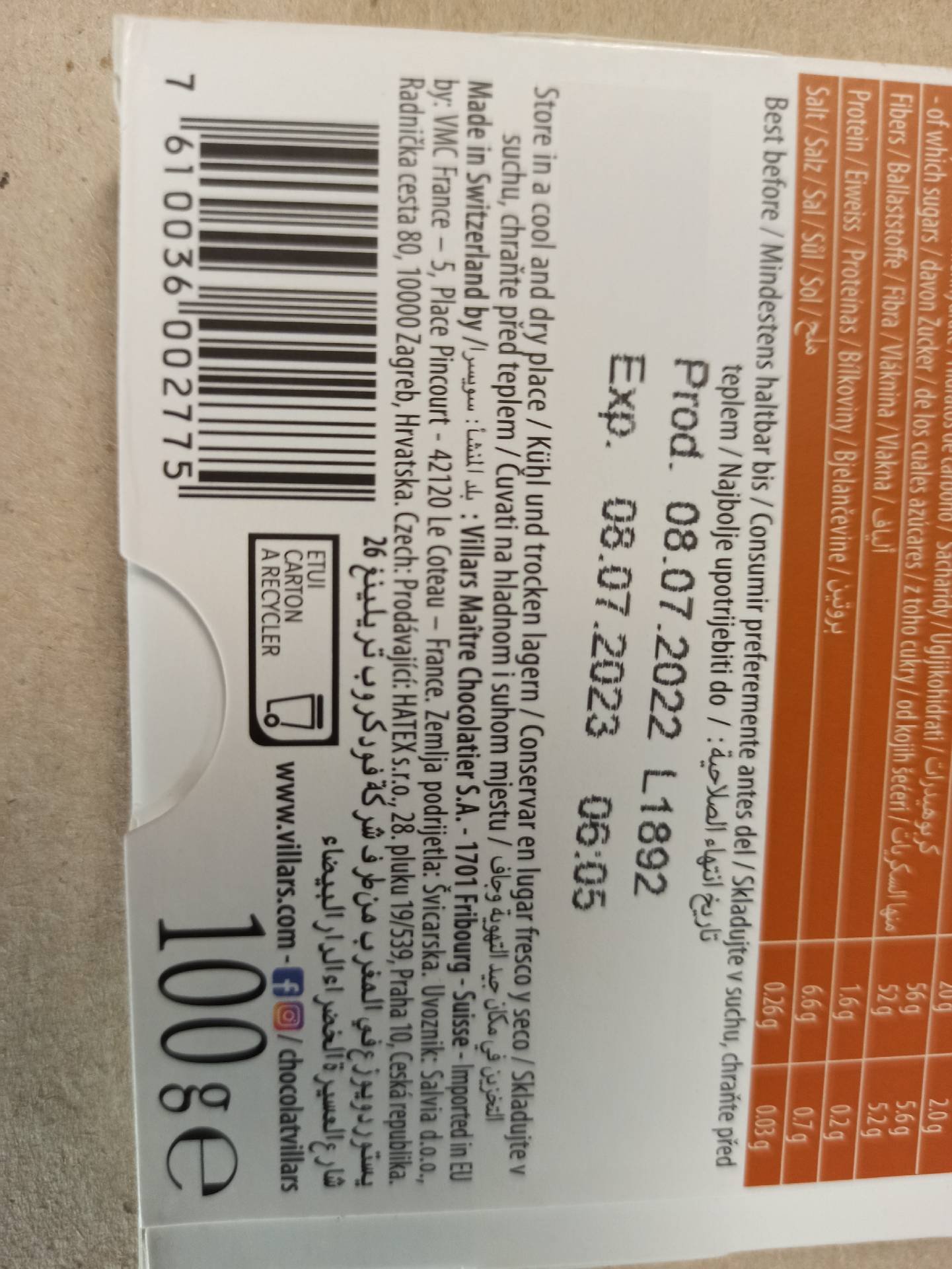 Obsah mléčné sušiny v čokoládě min. 23%.