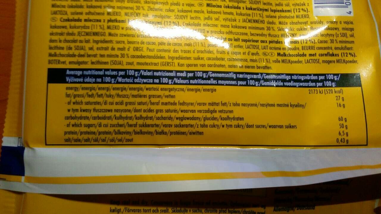 Obsah kakaové sušiny v mléčné čokoládě min. 30%.