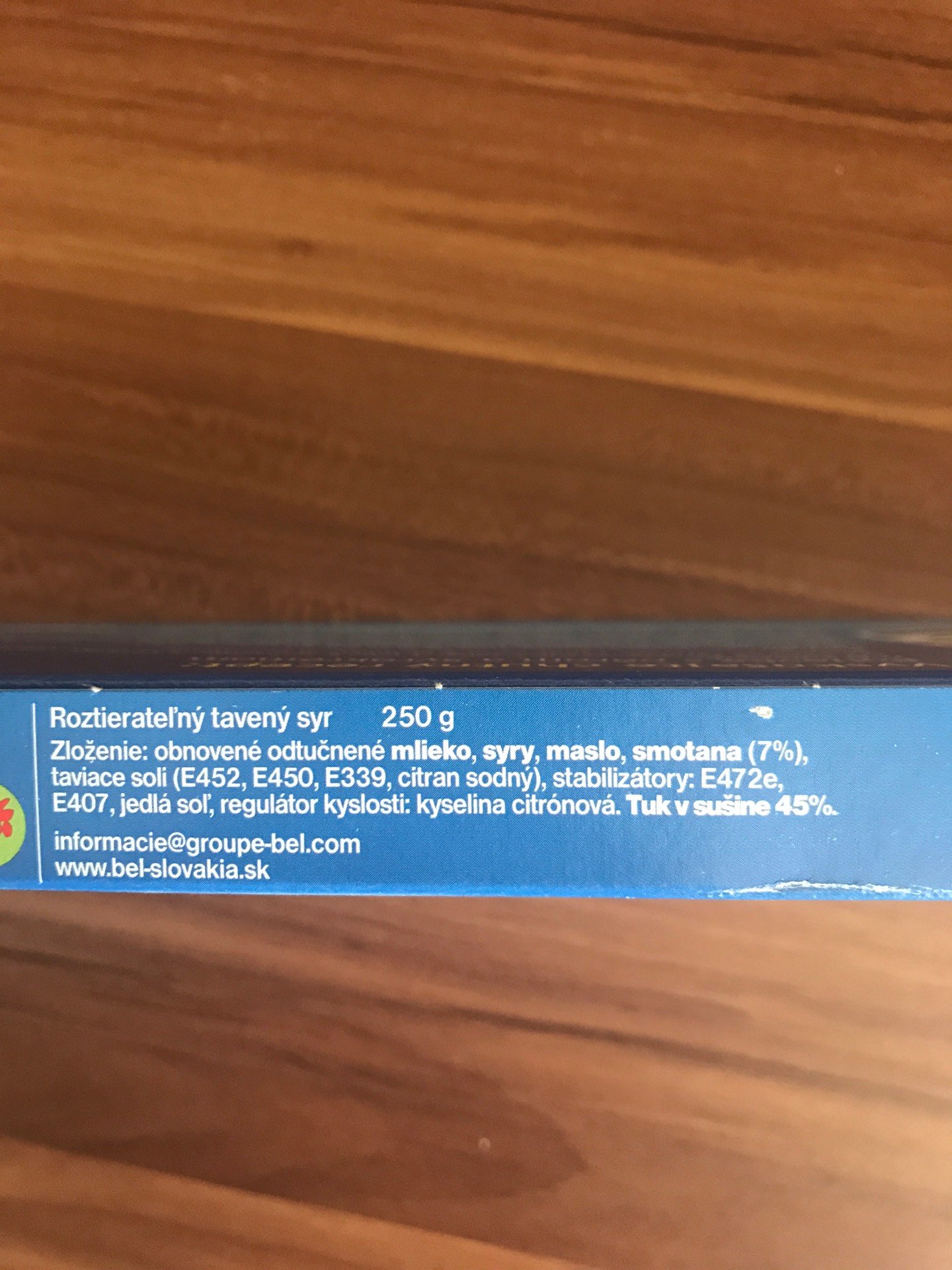 Roztiratelný tavený sýr. Tuk v sušině 45%.