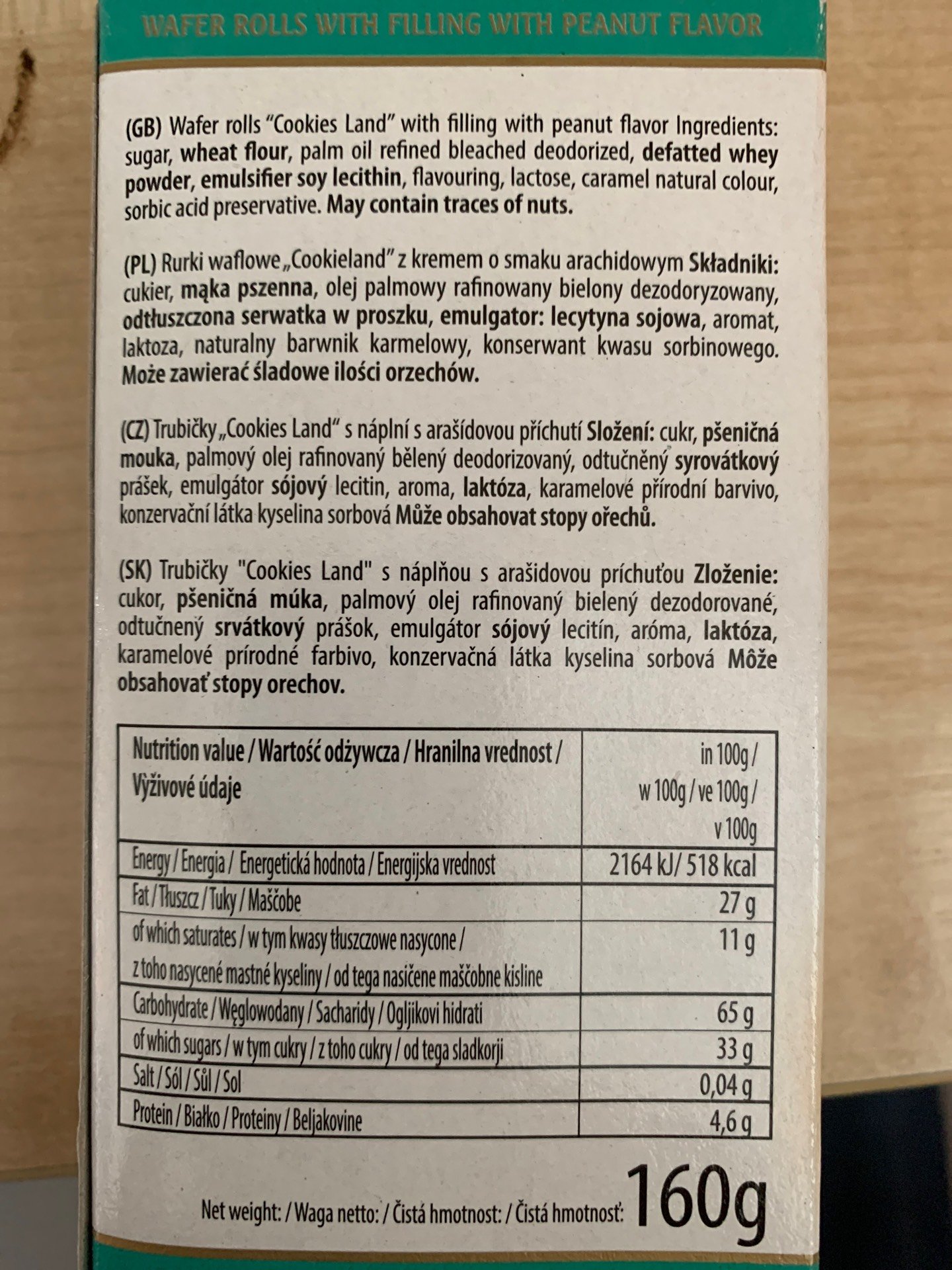 Trubičky "Cookies Land" s náplní s arašídovou příchutí.