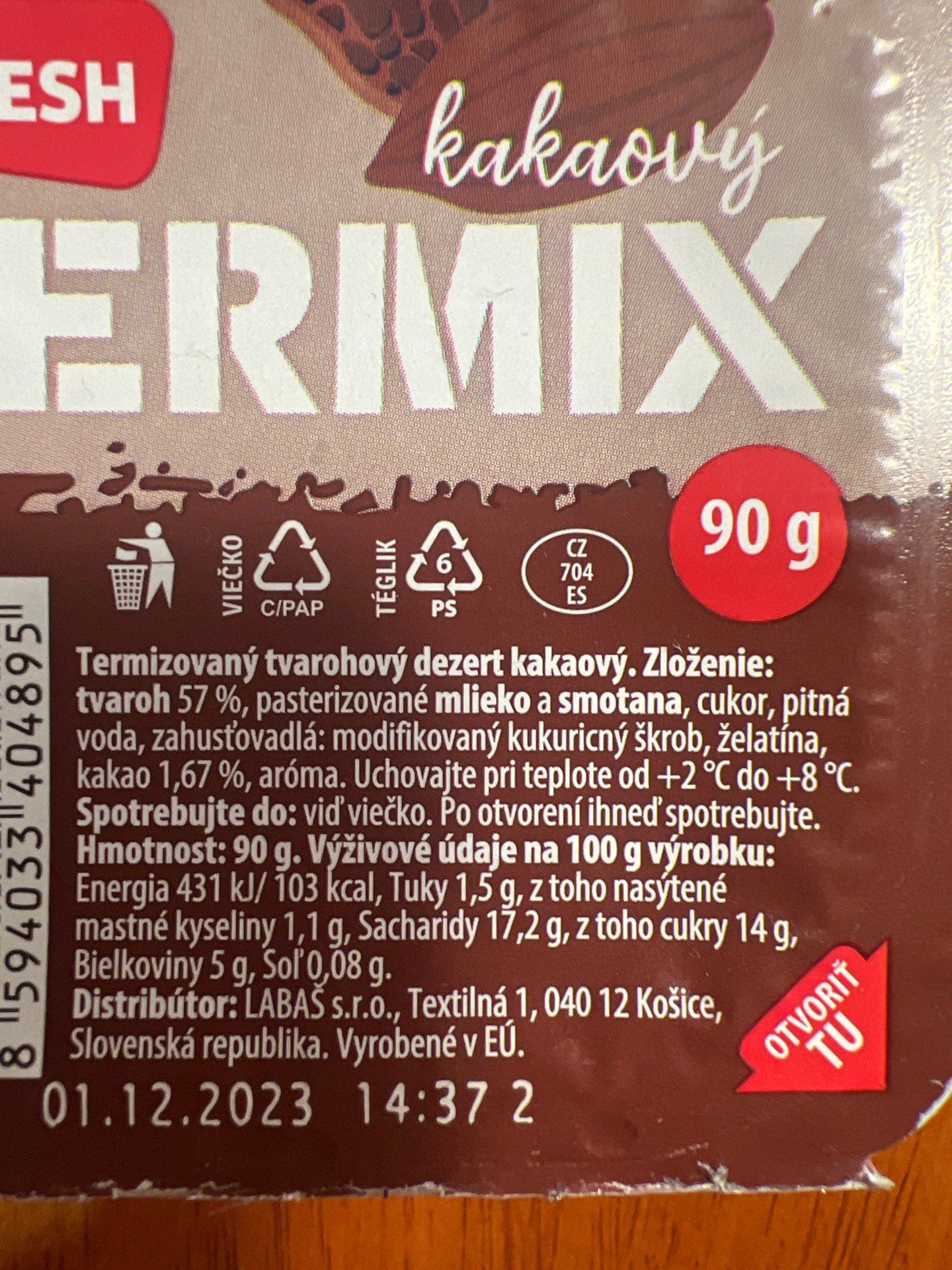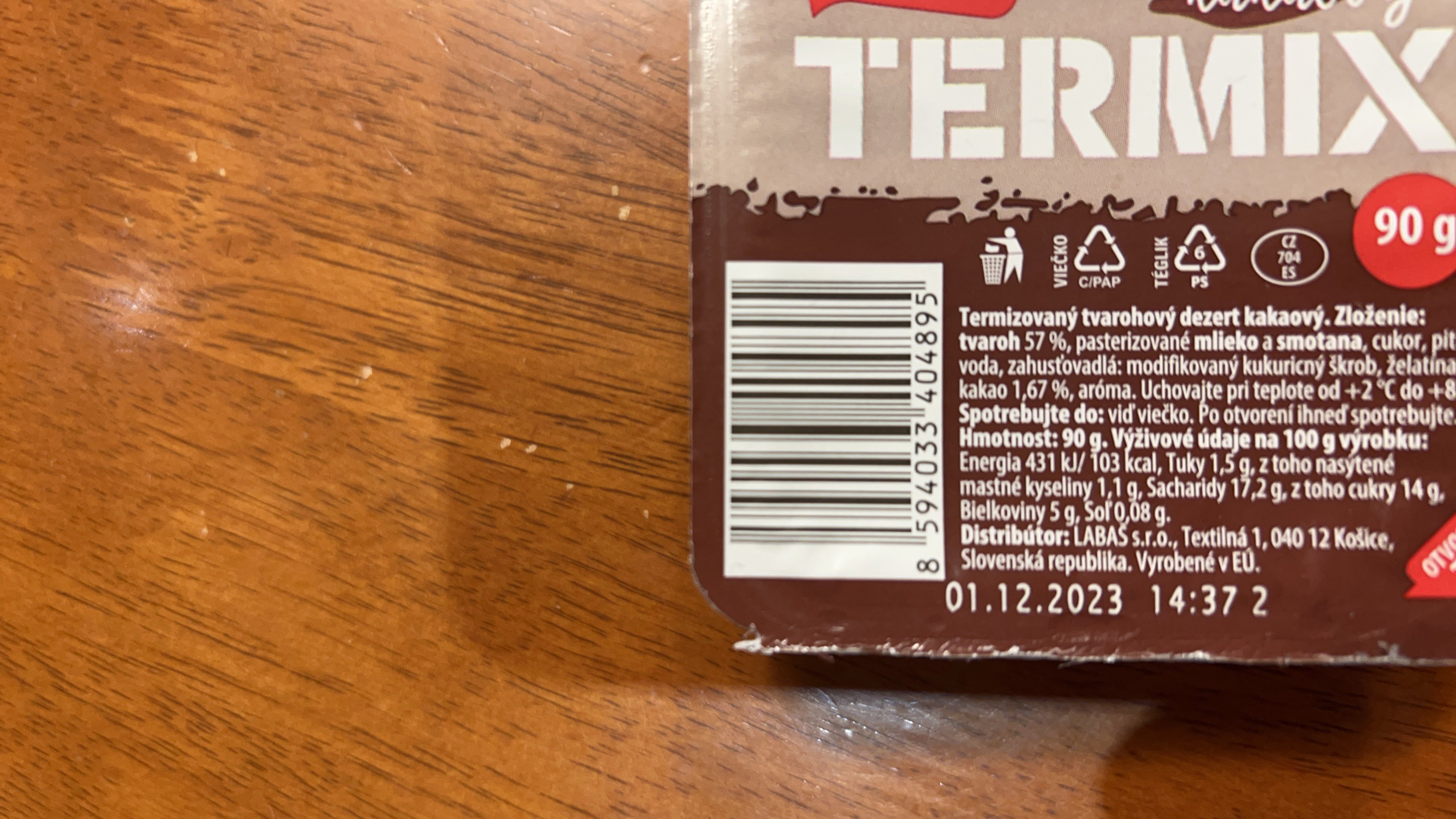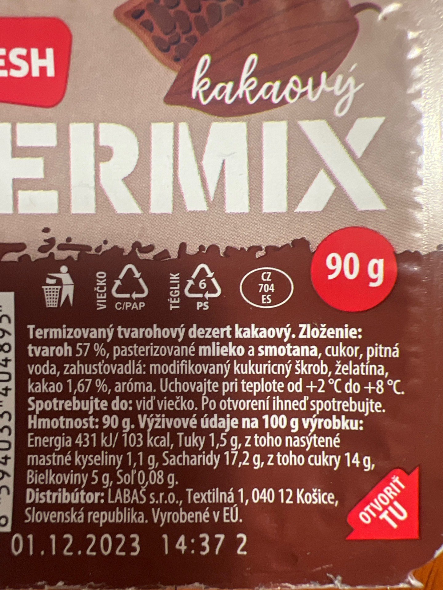 termizovaný tvarohový dezert kakaový