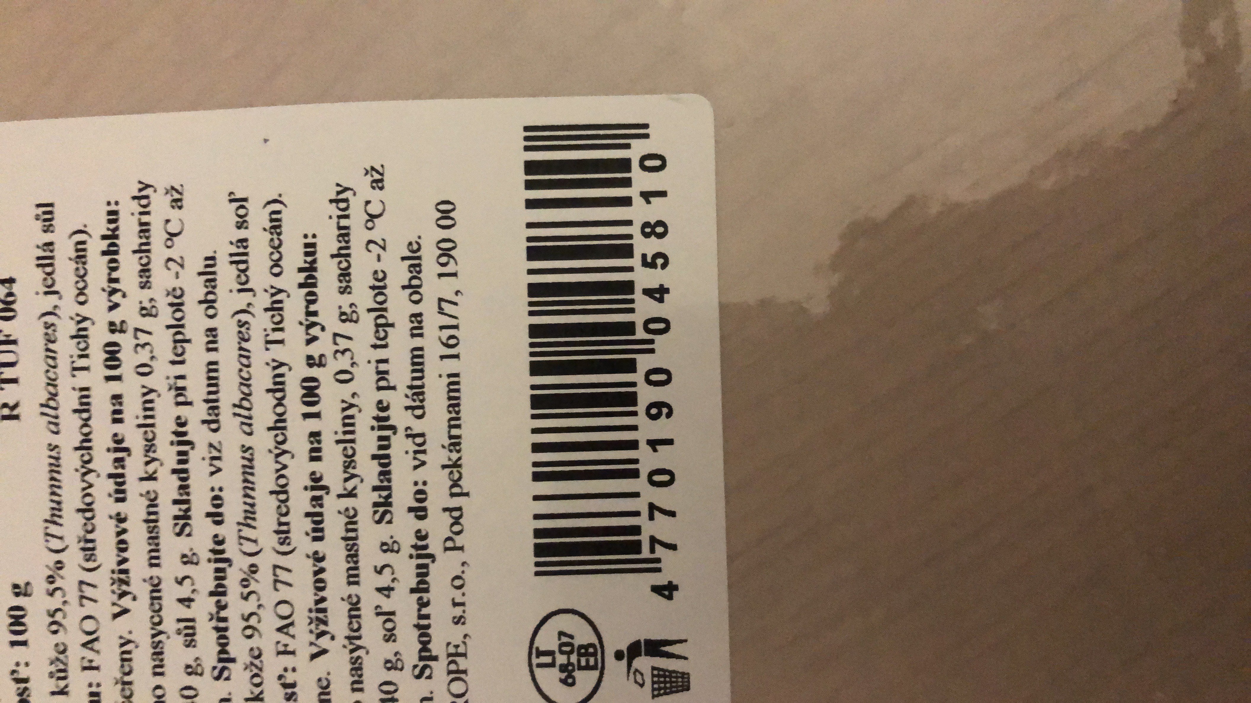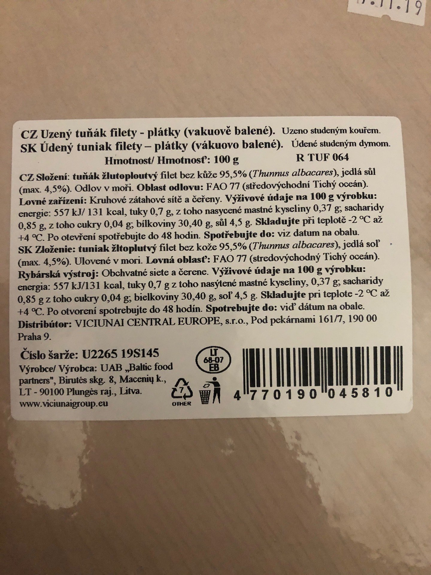 uzené plátky tuňáka; FAO 77; kruhové zátahové sítě a čeřeny