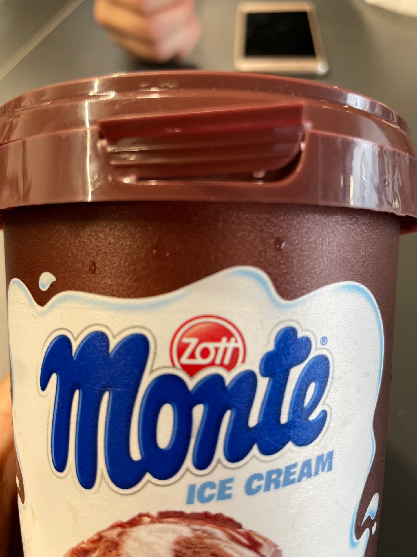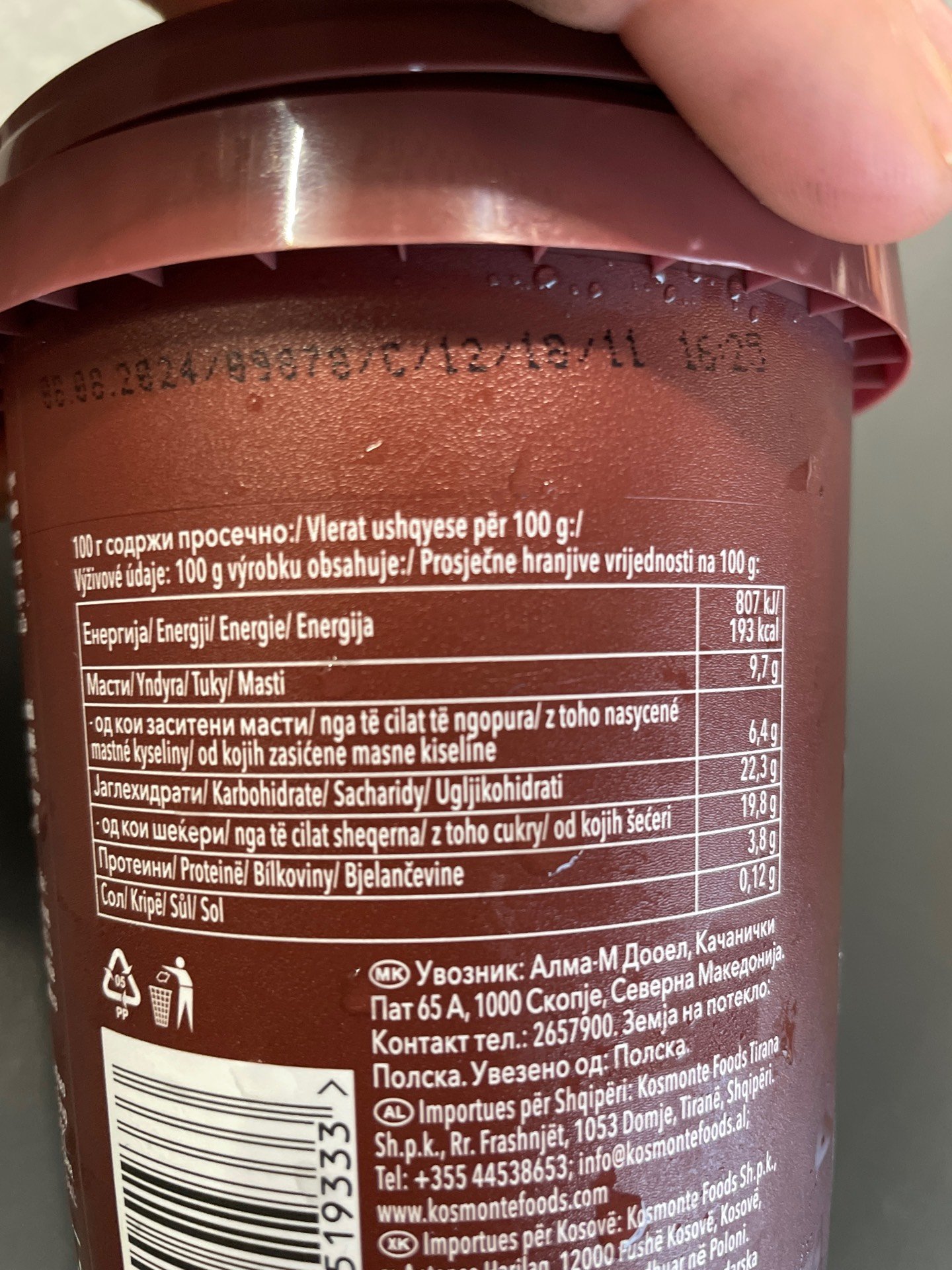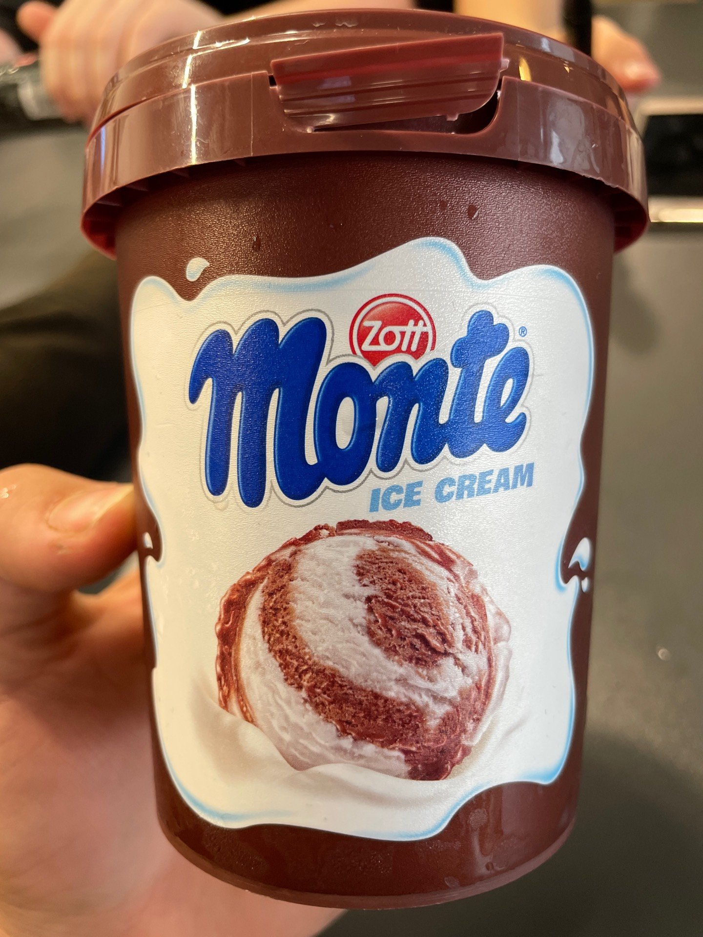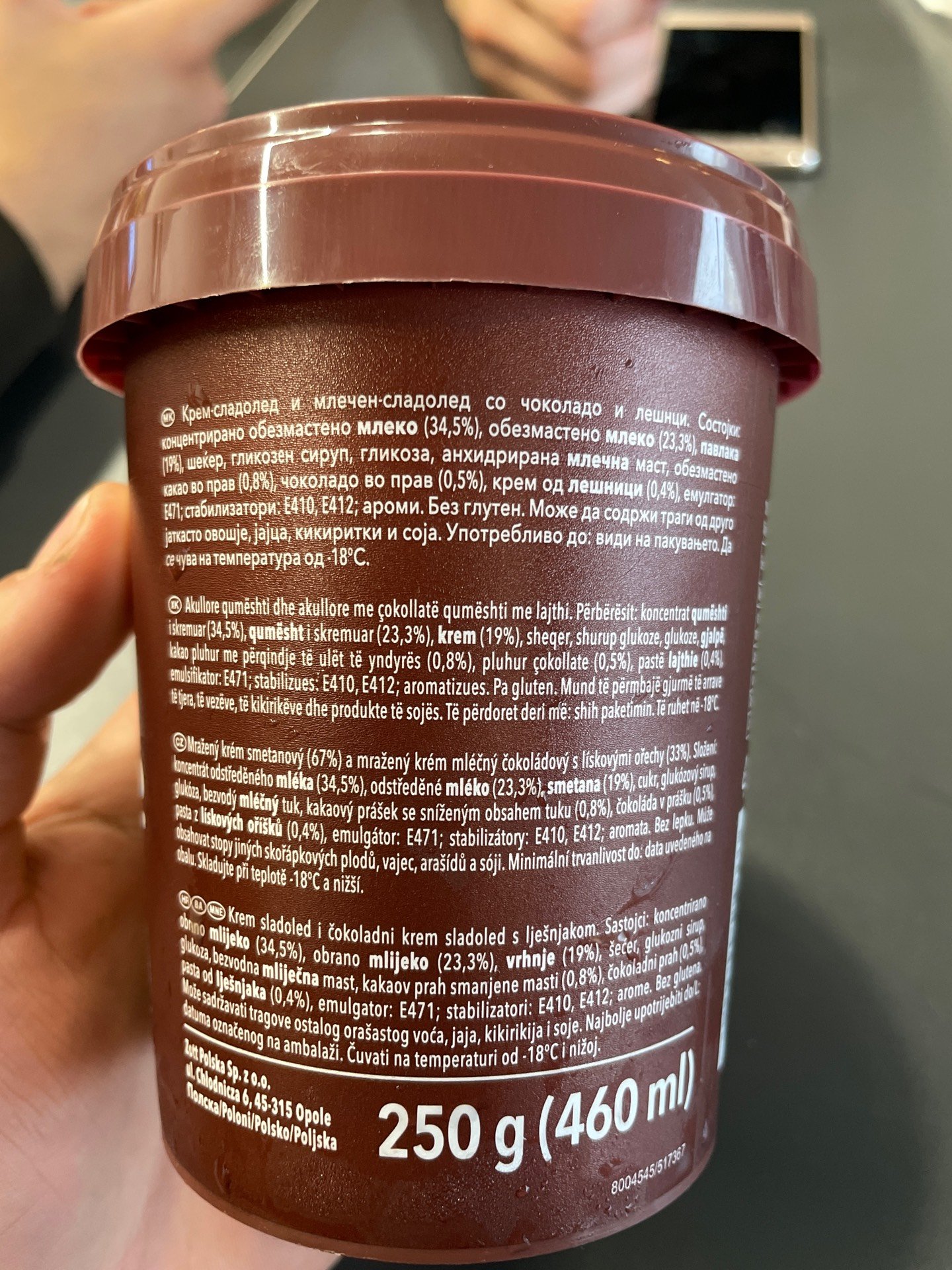 Mražený smetanový krém 67% a mražený krém mléčný čokoládový s lískovými ořechy 33%