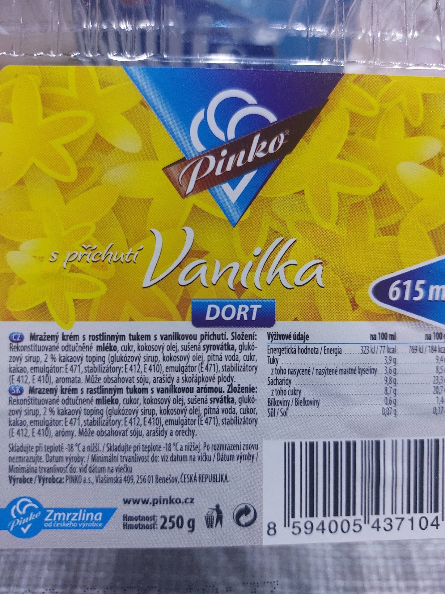 Mražený krém s rostlinným tukem s vanilkovou příchutí.