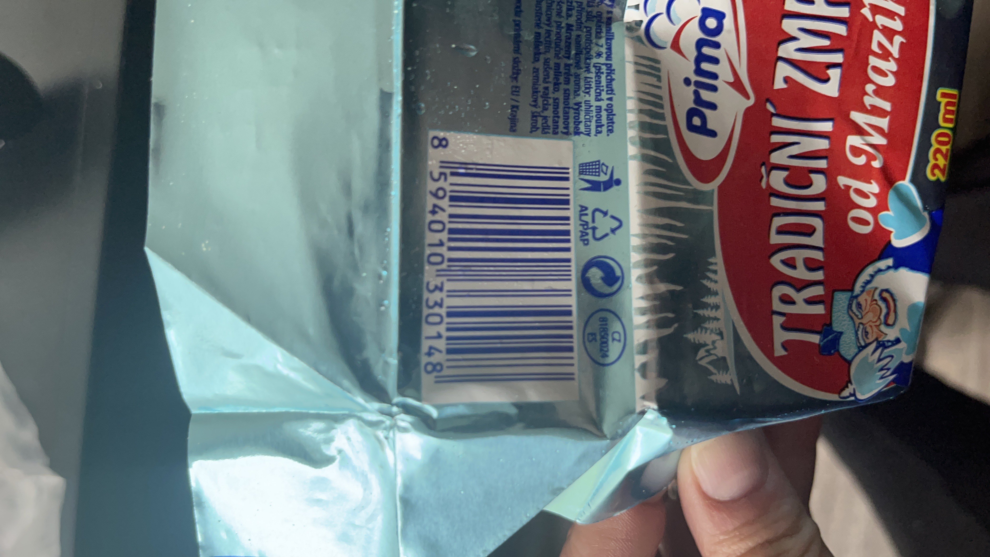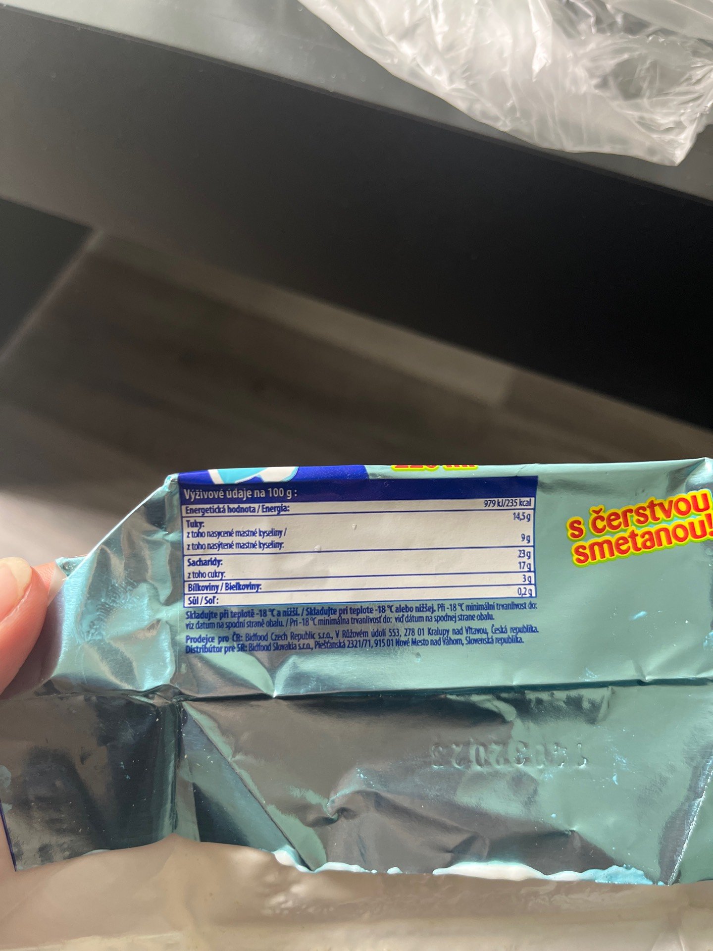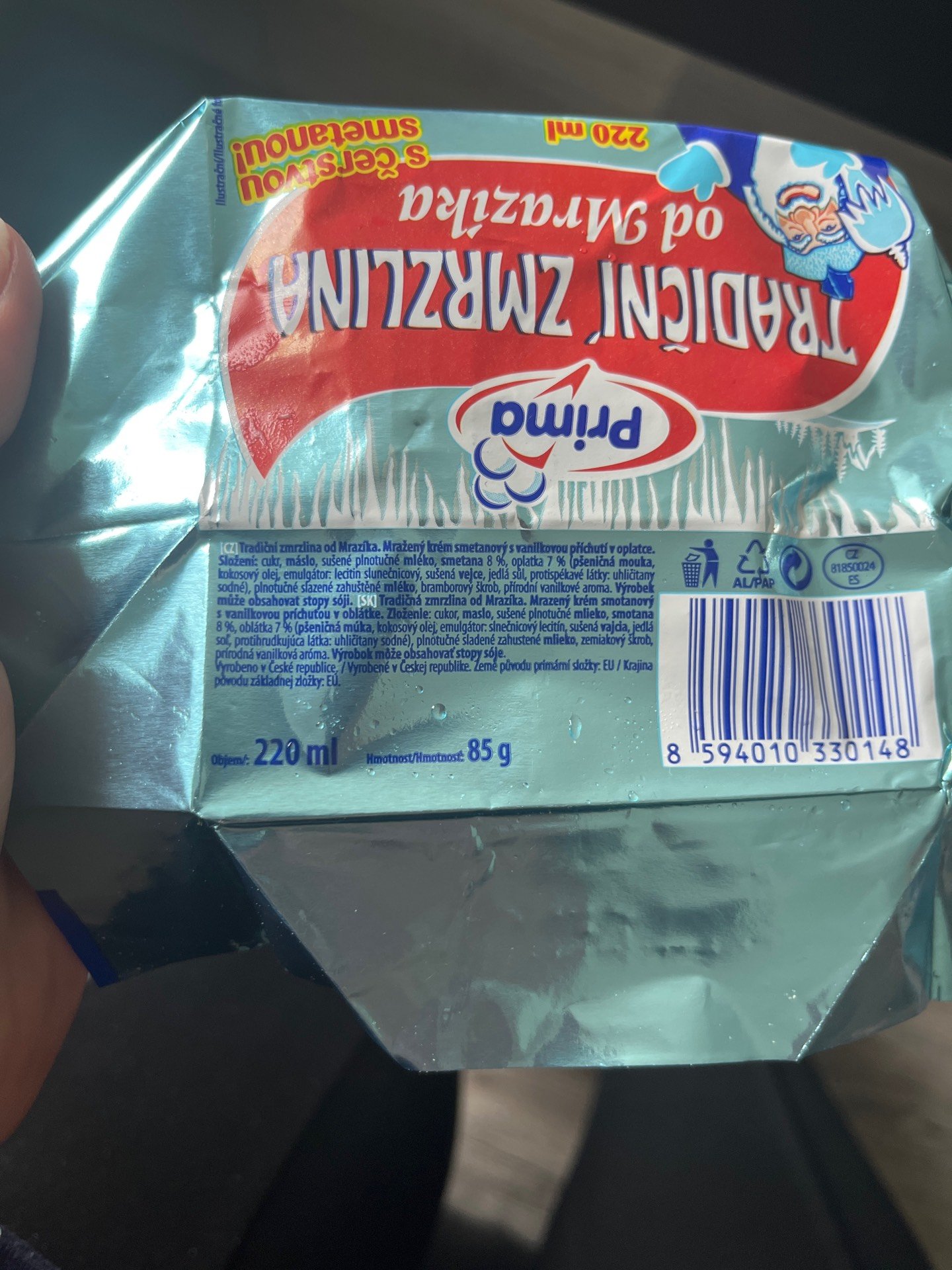 Mražený krém smetanový s vanilkovou příchutí v oplatce.