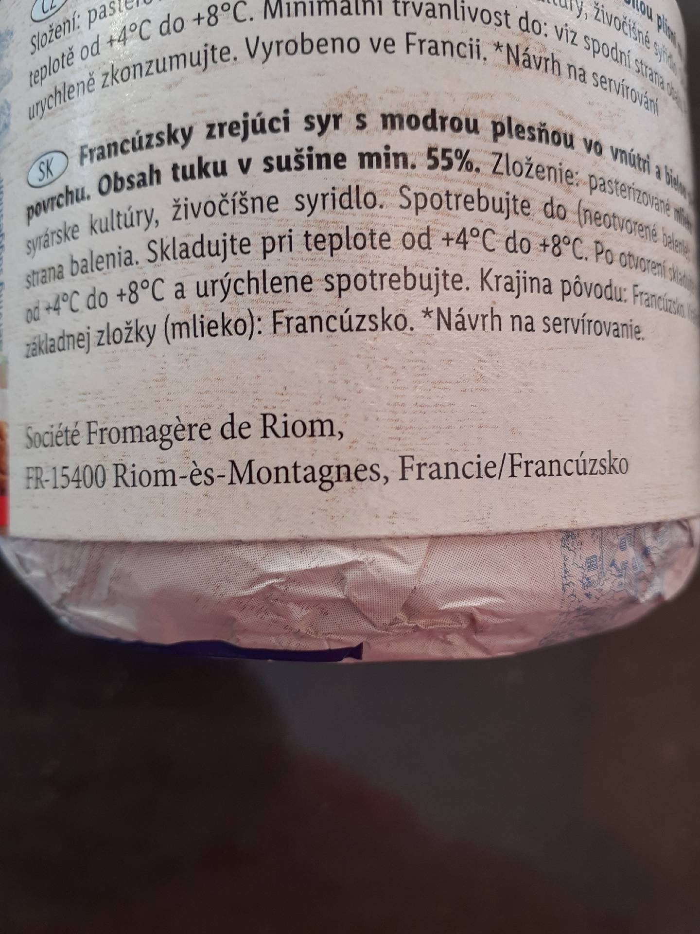 Francouzský zrající sýr s modrou plísní uvnitř a bílou plísní na povrchu.